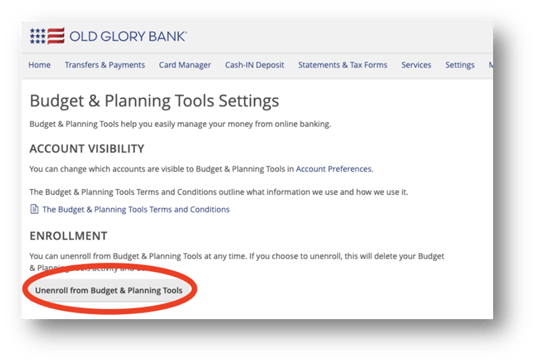 Click Unenroll from Budget & Planning Tools.